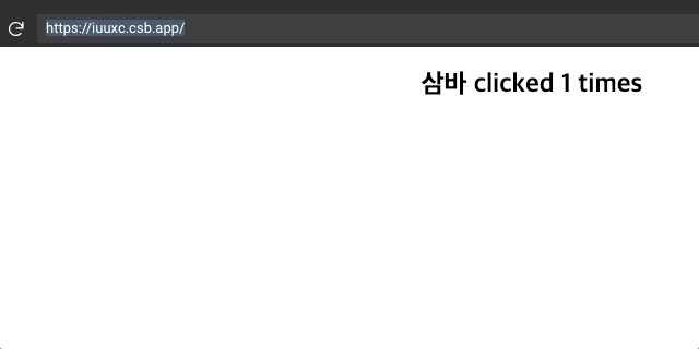 로 바꾼 후, 예제를 실행해보면 이름 clicked 0 times