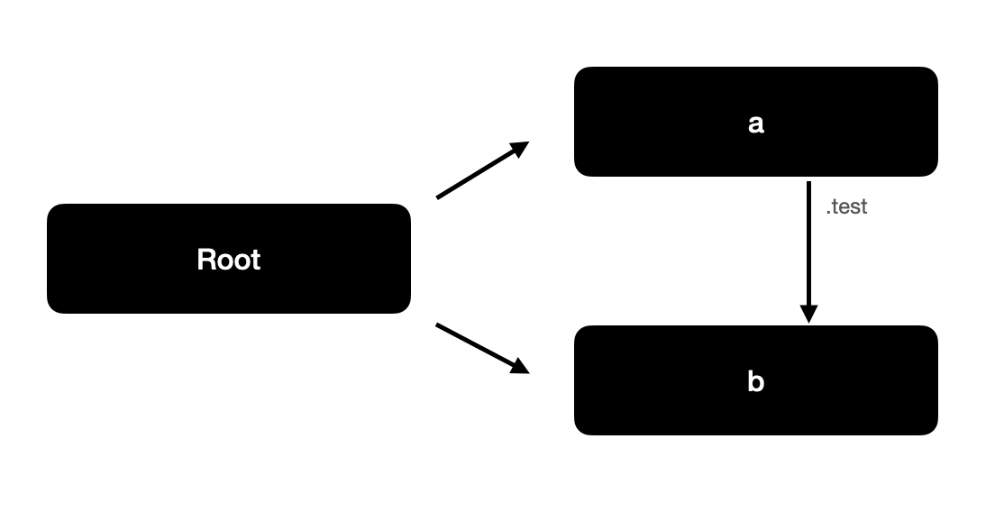 a와b변수가 선언되고 빈객체({})가 할당됩니다. a와b는 상위코드가 없으므로 Root와 연결합니다.a.test를 통해b를 접근할 수 있으므로a가b를 참조하고 있어 연결해줍니다. (블럭 스코프내의 Root 부터 아래의 그래프와 같이 연결되어 있을겁니다.)- 만약 현 상황에서 GC가 실행된다면 Root가 참조하고 있는 모든 객체를 방문하고 Mark합니다.