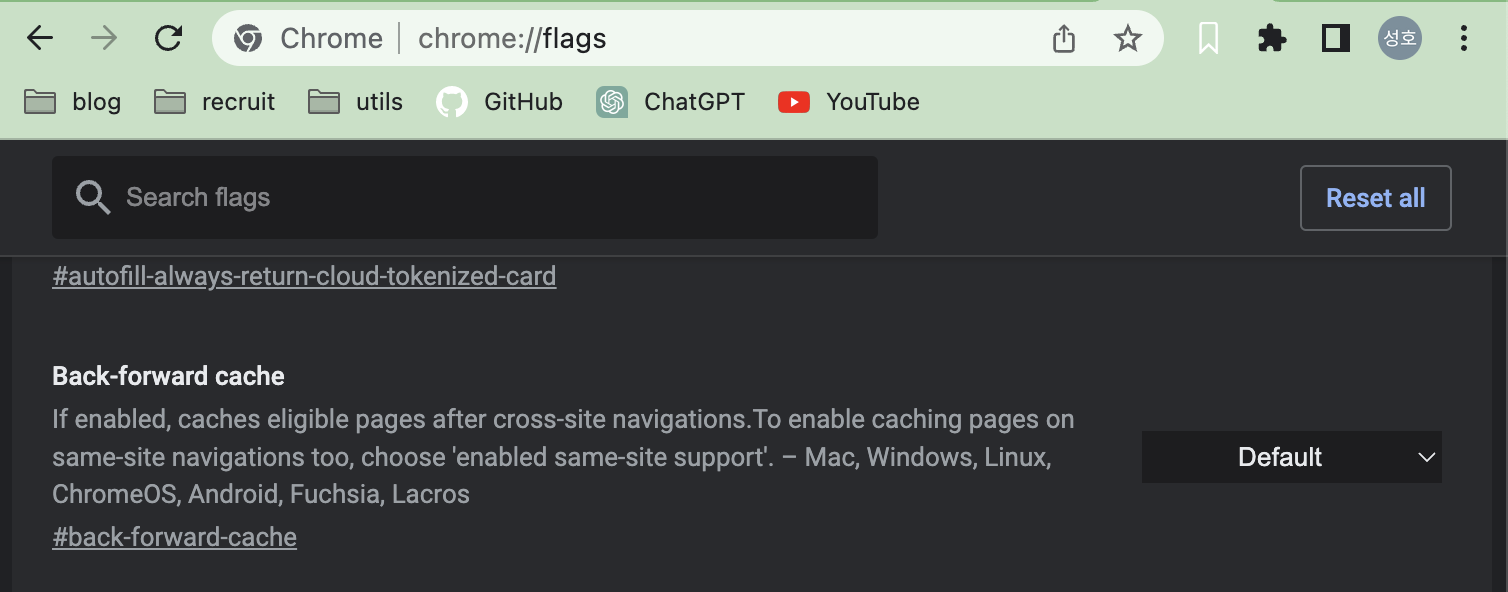 크롬에서 chrome://flags/ 로 접속하여 Back-forward cache 를 활성화하여 테스트해볼 수 있습니다.
